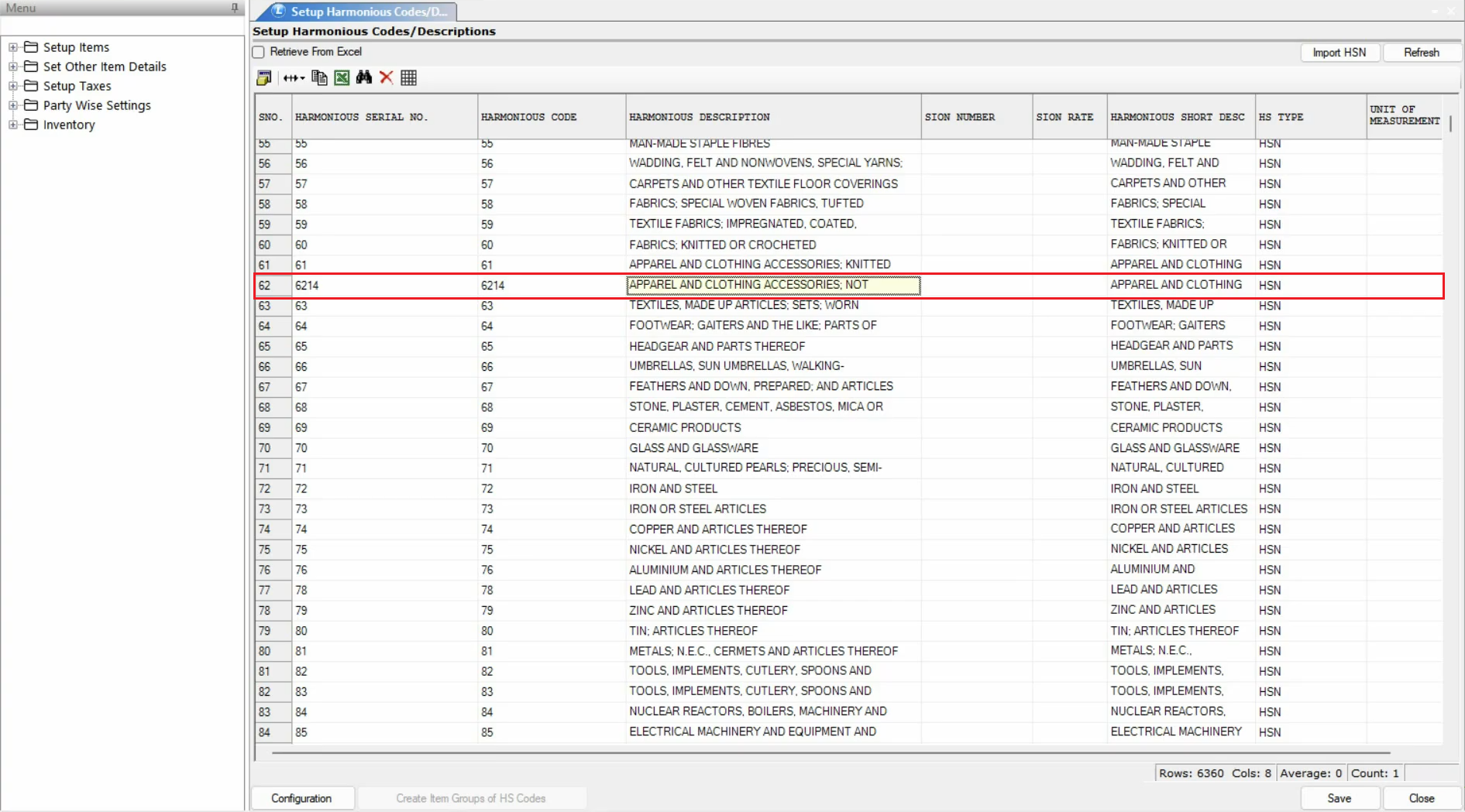 * Use the **Find Filter** to locate the invalid HSN codes.