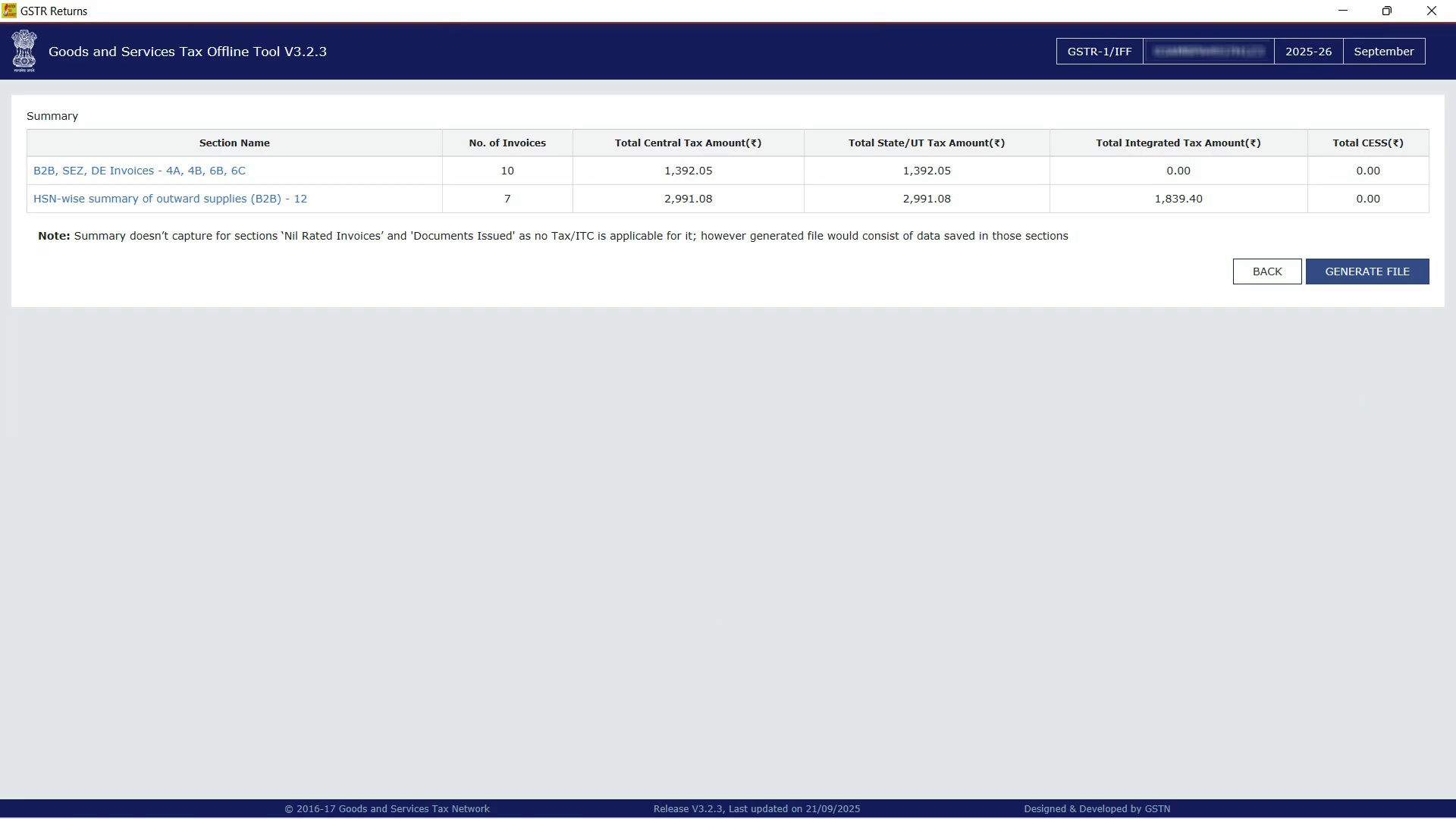 * After verification, click on the **Generate File** button in the GST Offline Tool.
