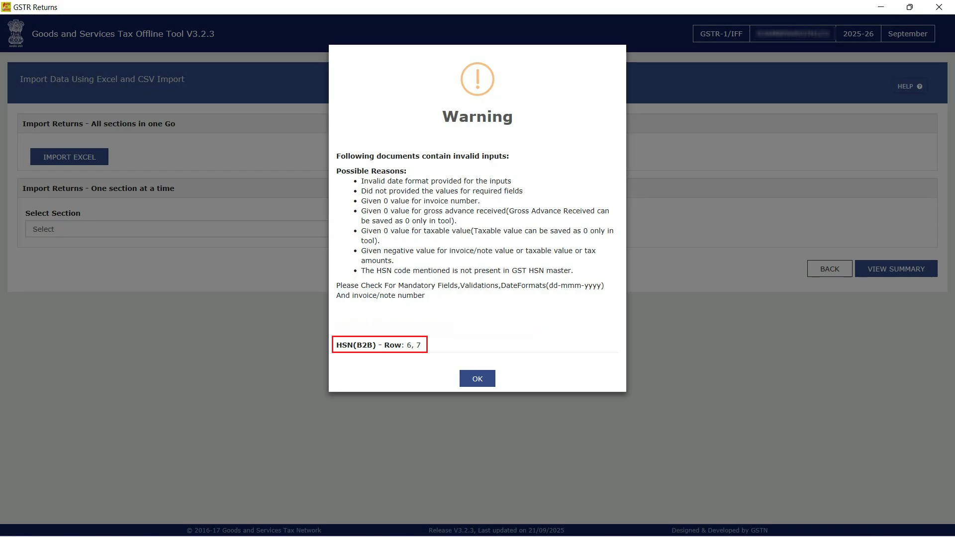 * Open the **GST Offline Tool** again and **re-import** this corrected file.