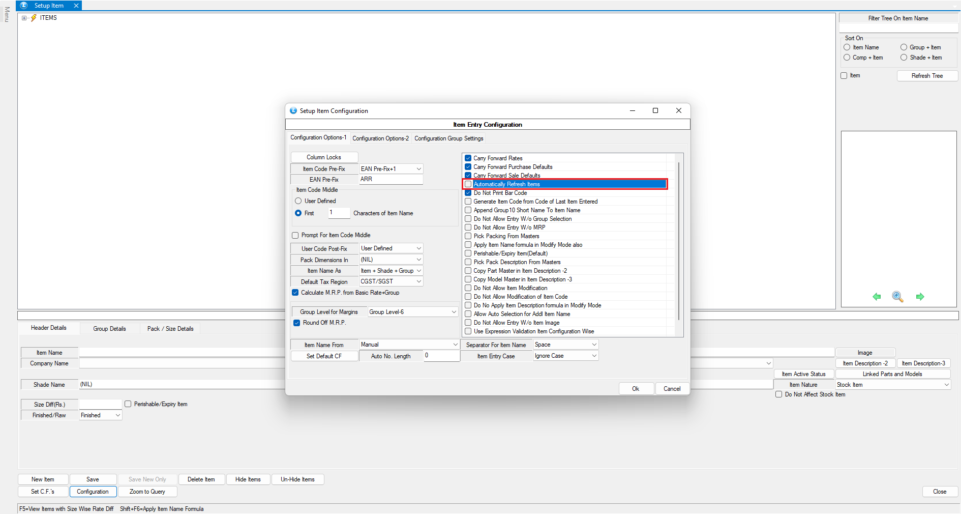 ## How to Enable Auto - Refresh of Items List in Setup Items?