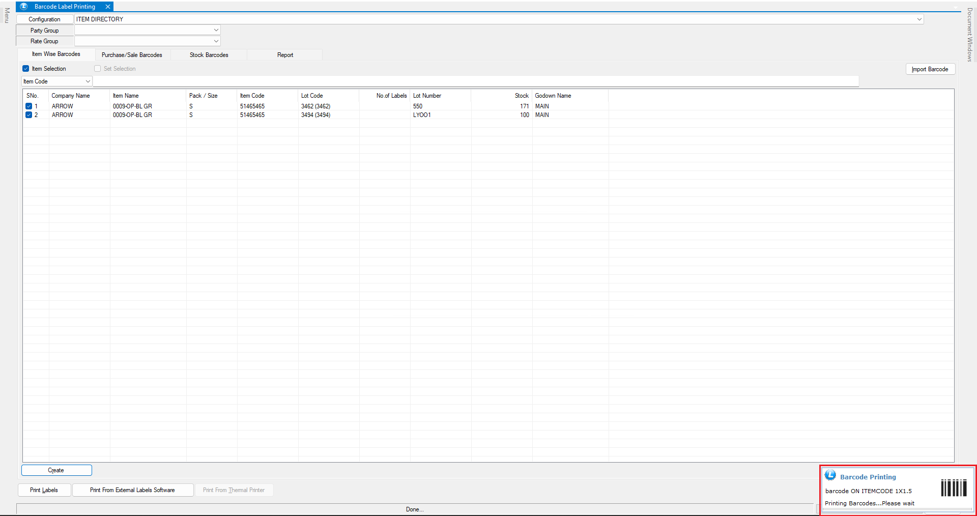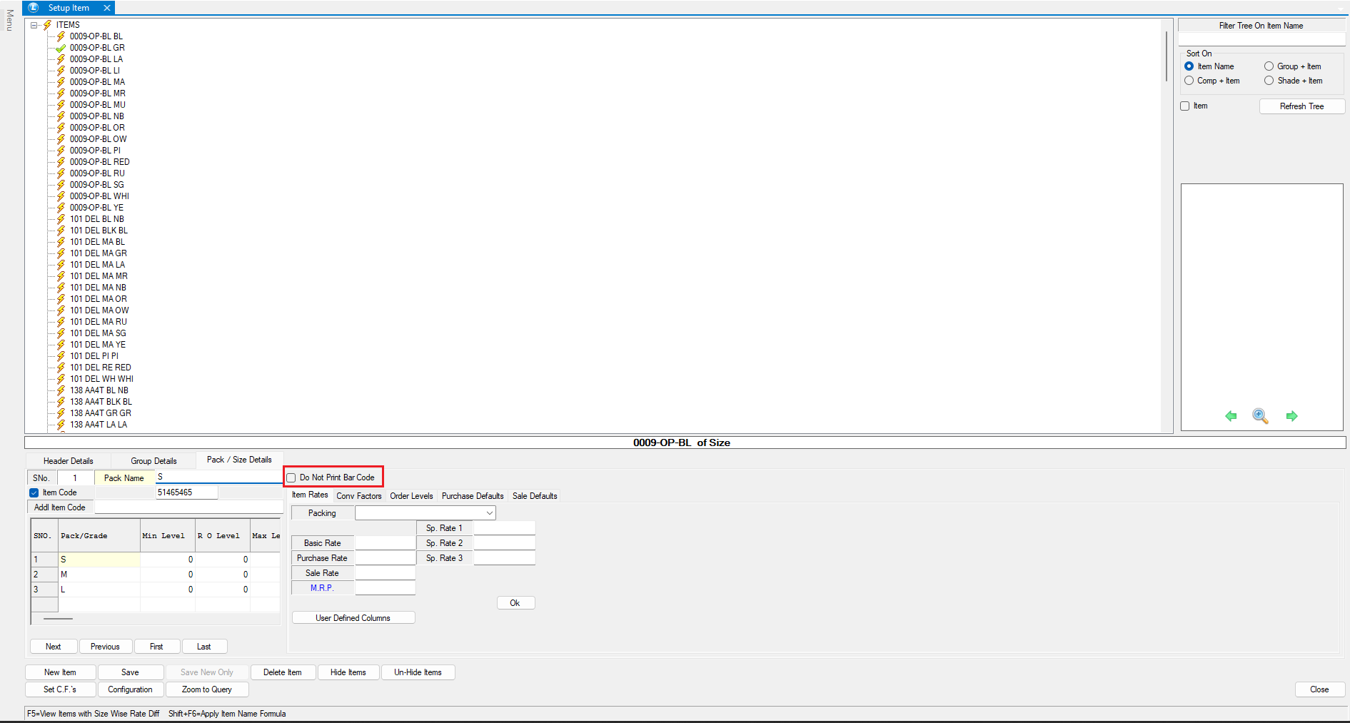 * After saving, the system automatically **checks the “Do Not Print Barcode” option** for that item.