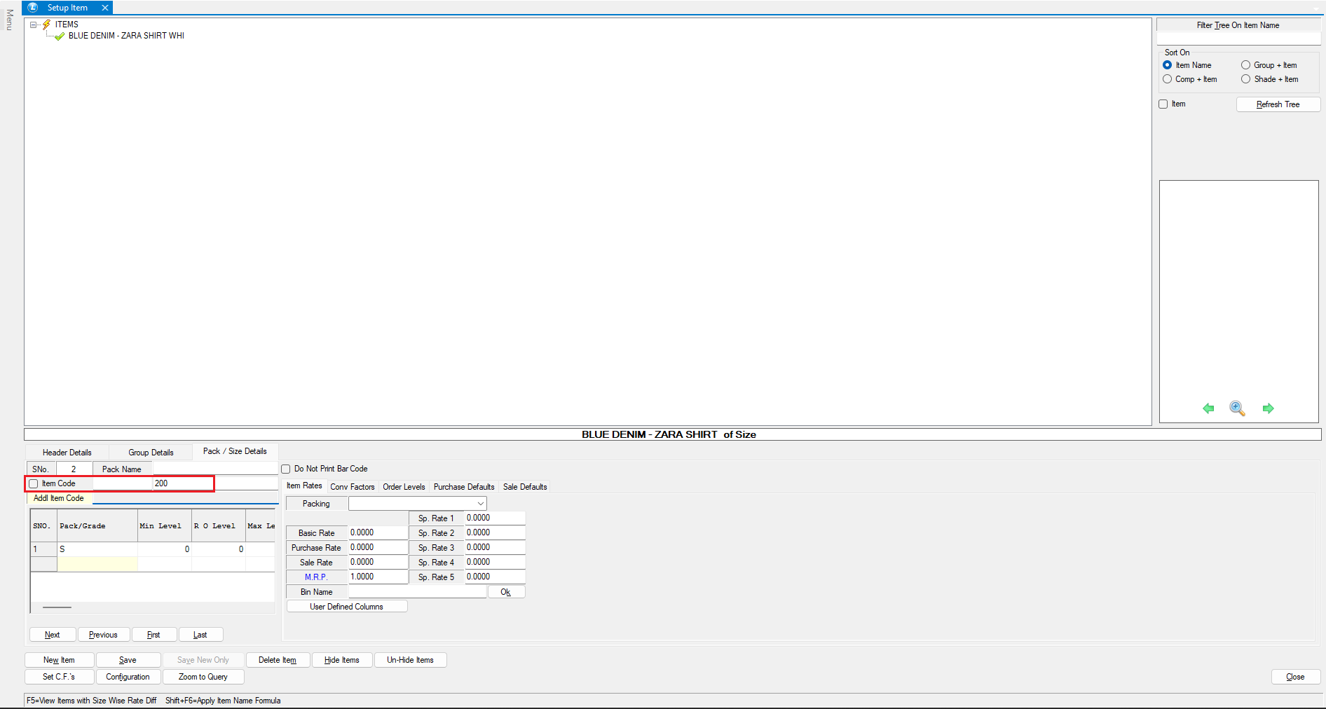 * Navigate to Setup\Setup Items and then select **"Setup Items Multiple Packs/Sizes Sizes".**