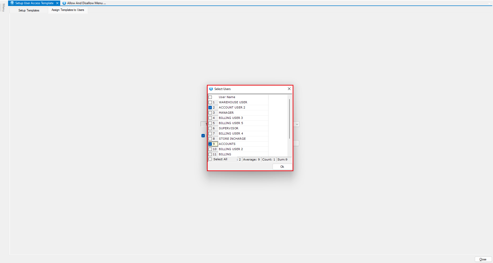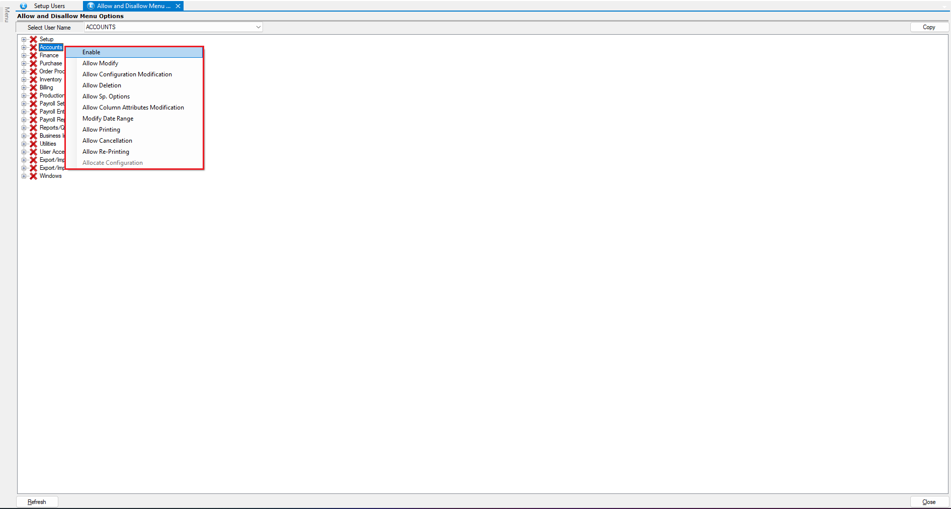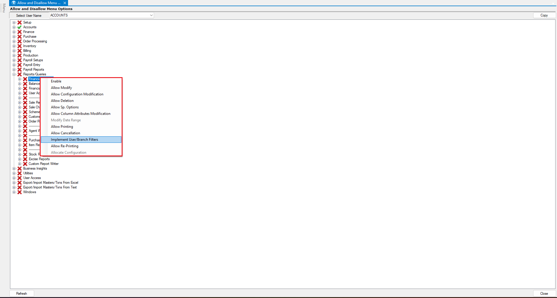 # Setup User, Allow and Disallow Menus Options and User Reports