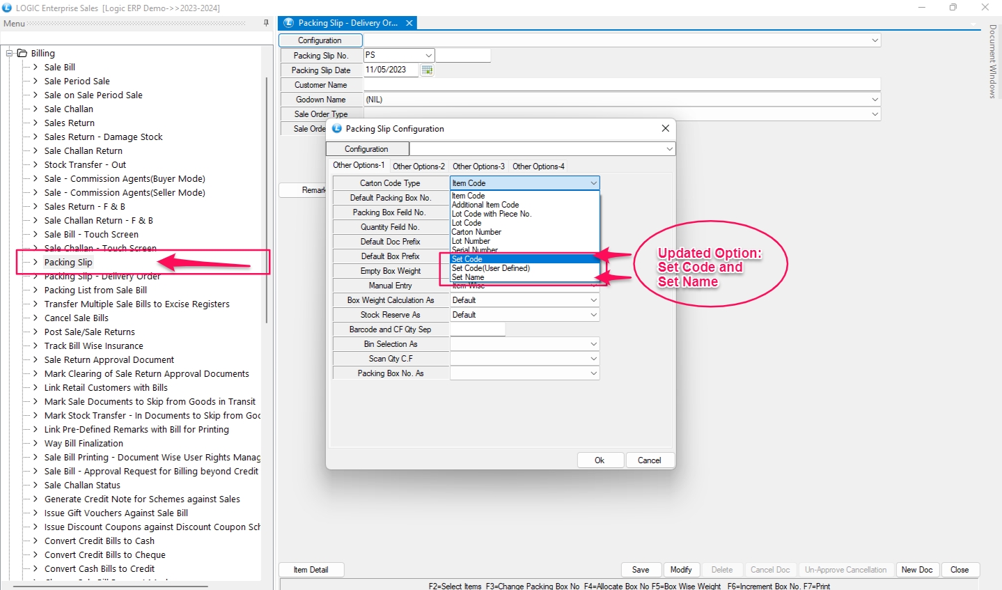 New Option “Set Name” and “Set Code” has updated in the Packing Slip