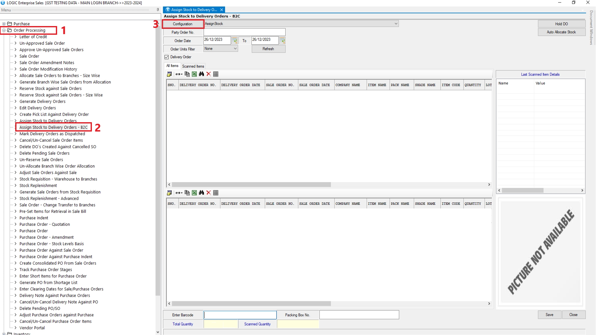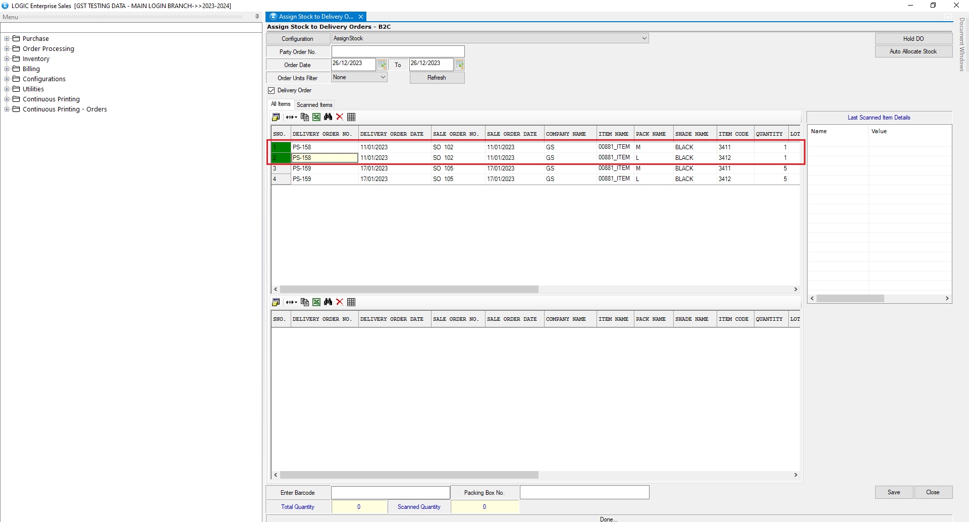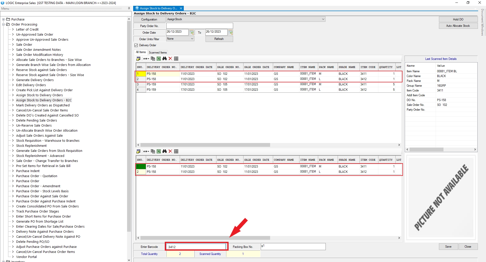 >>> The Two Block Appear here, Now Choose the Delivery Order to Assign Stock. Enter the Barcode of the item of the selected Bill.