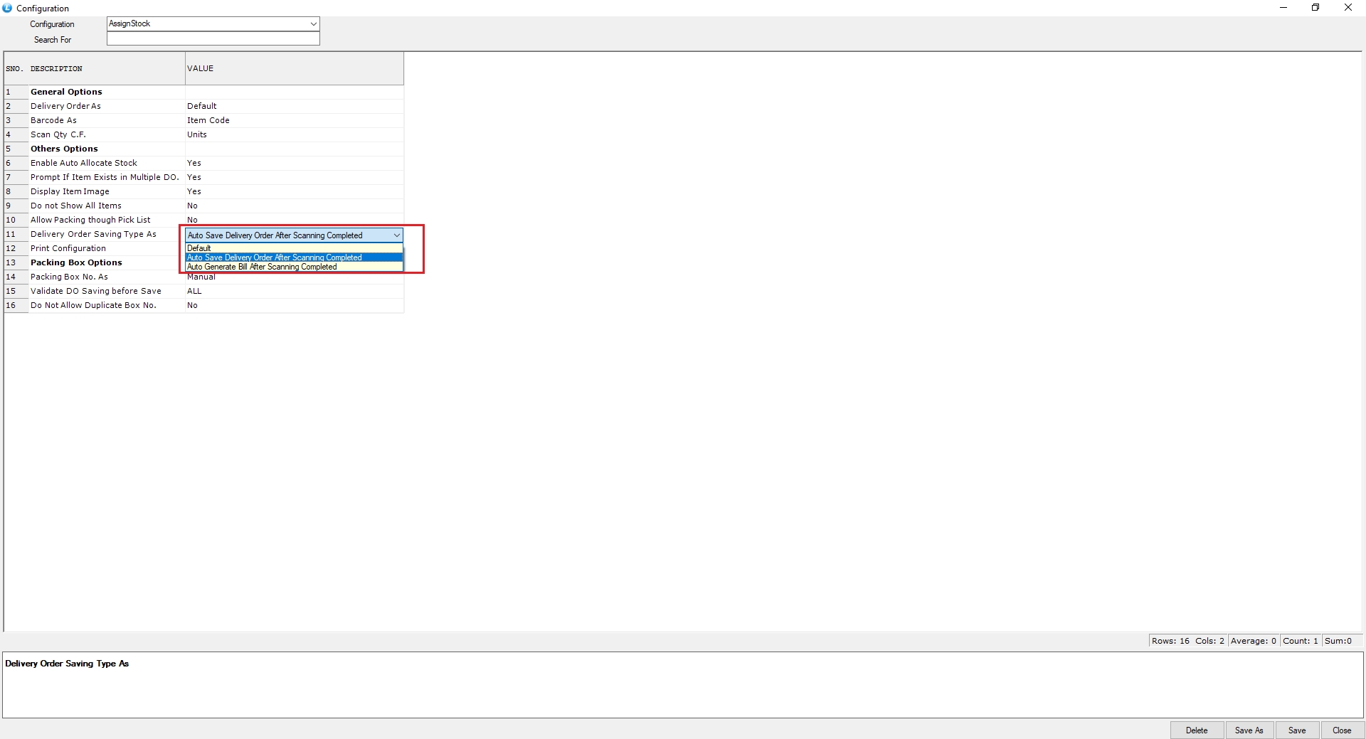New Option “AutoSave Delivery Order After Scanning Completed” is added in the configuration of Assign Stock to Delivery Order – B2C.