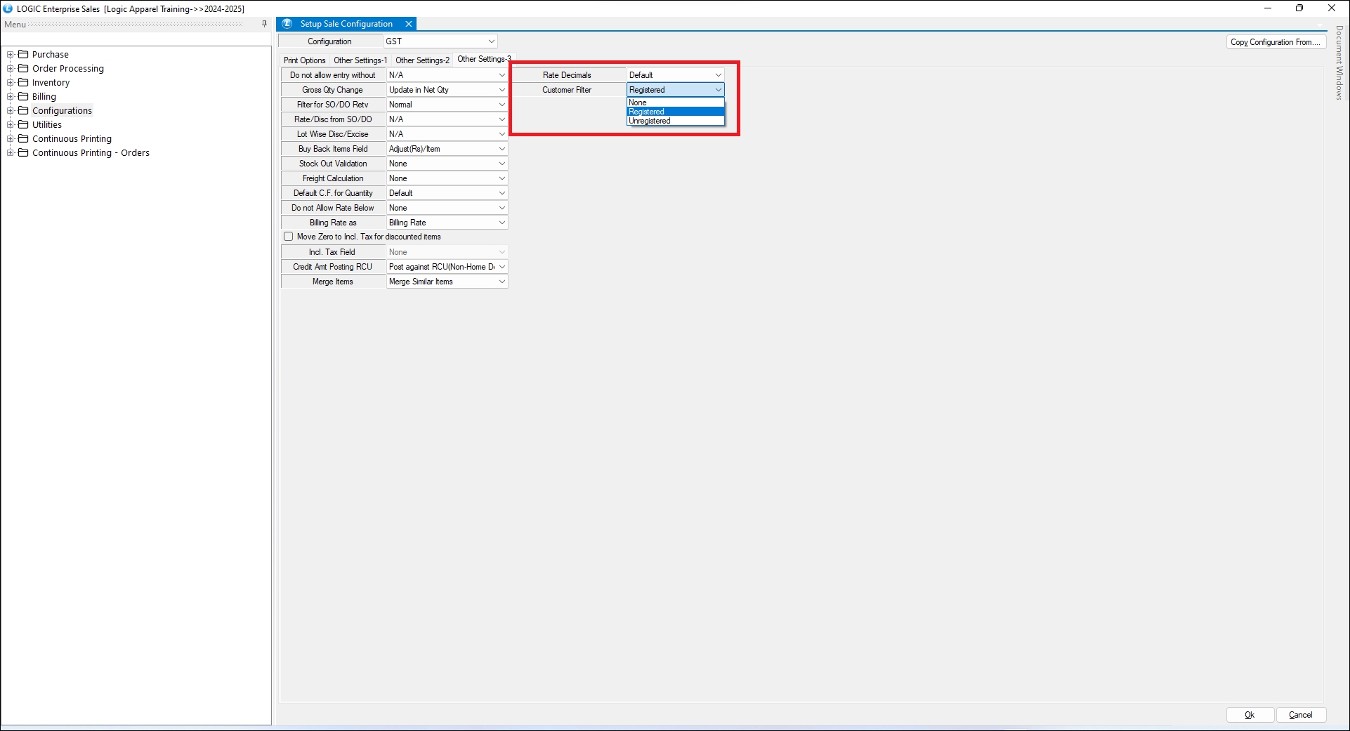 You can now restrict a particular Sale Bill Series to allow billing of either Registered or Un-Registered customers.