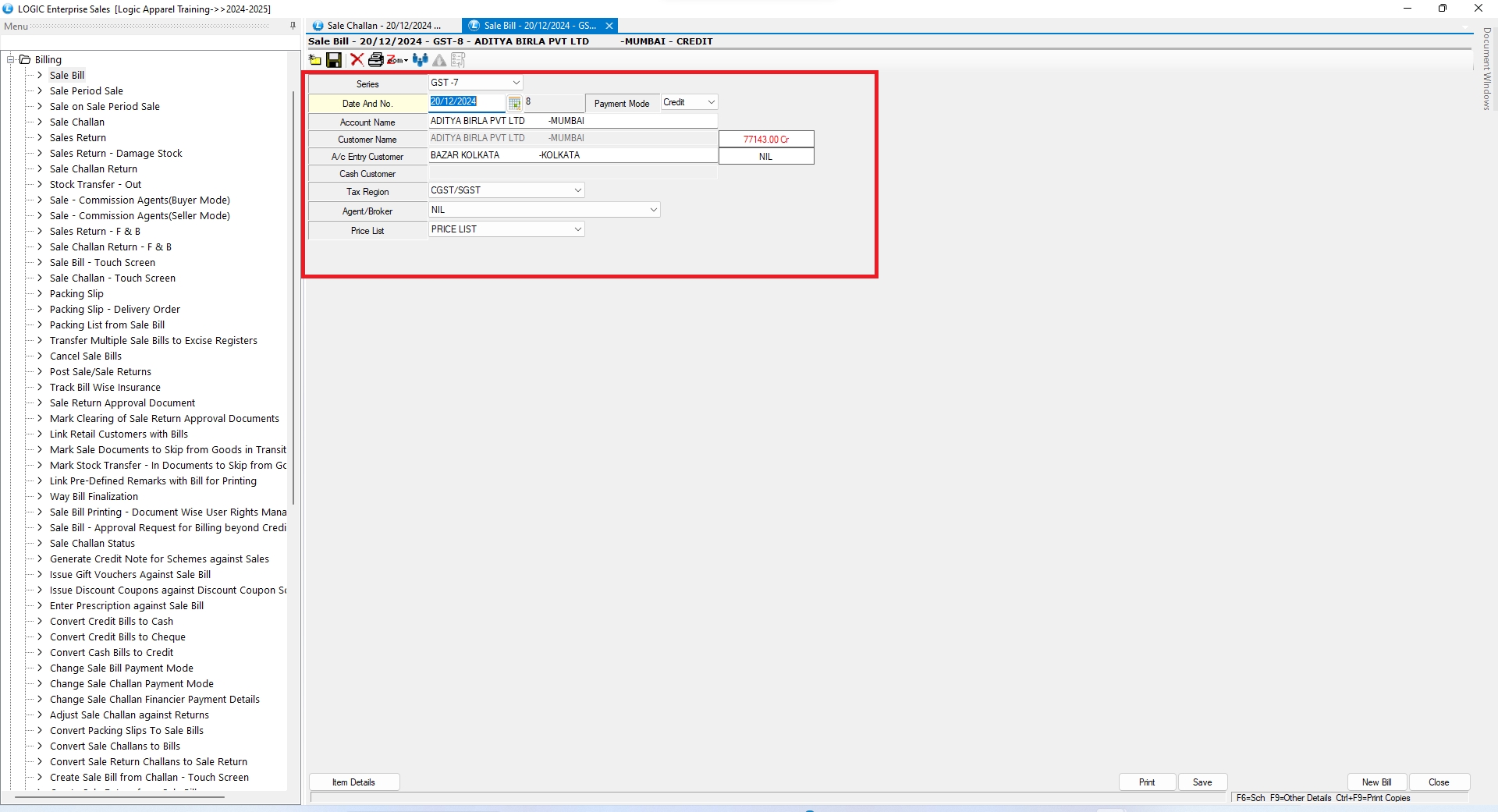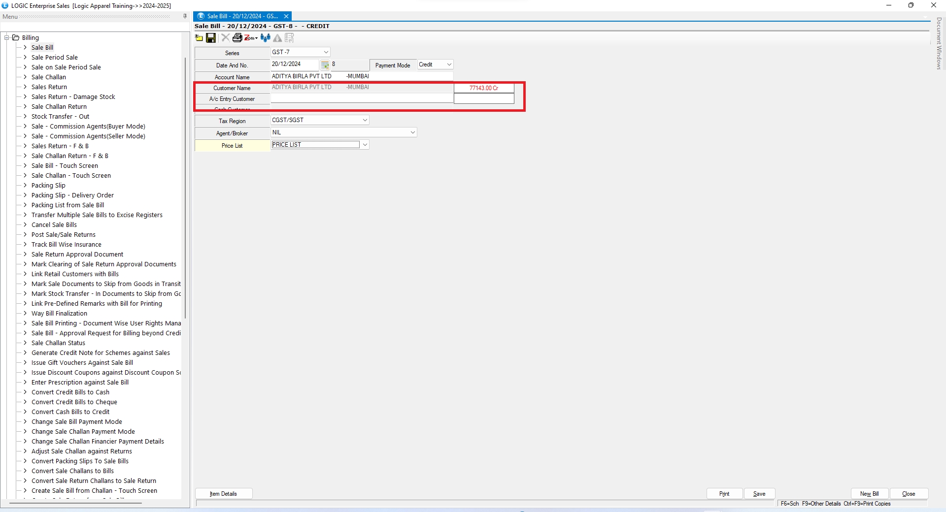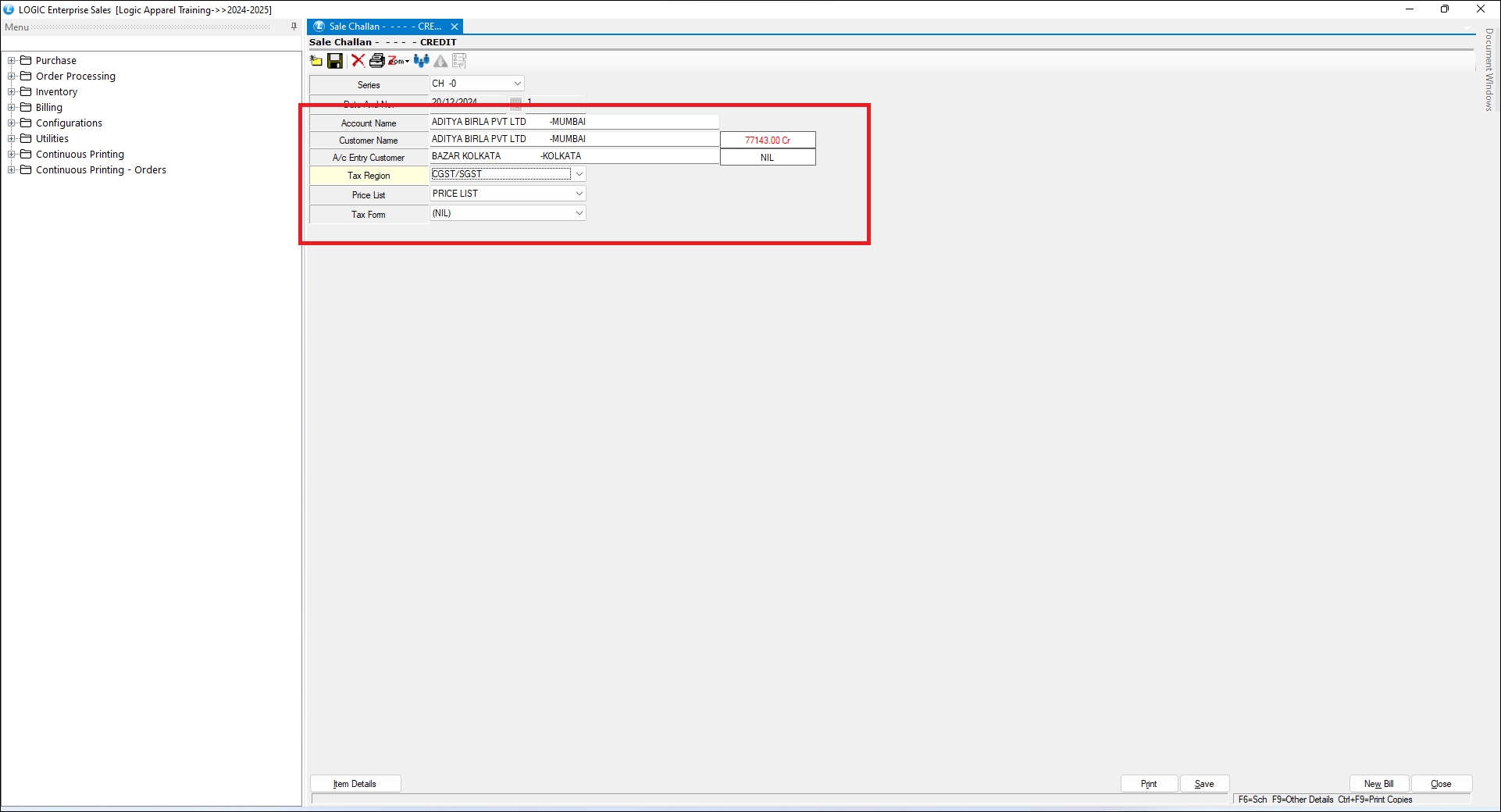 Retrieve Customer/Account Entry Customer in Sale Bill from Challan