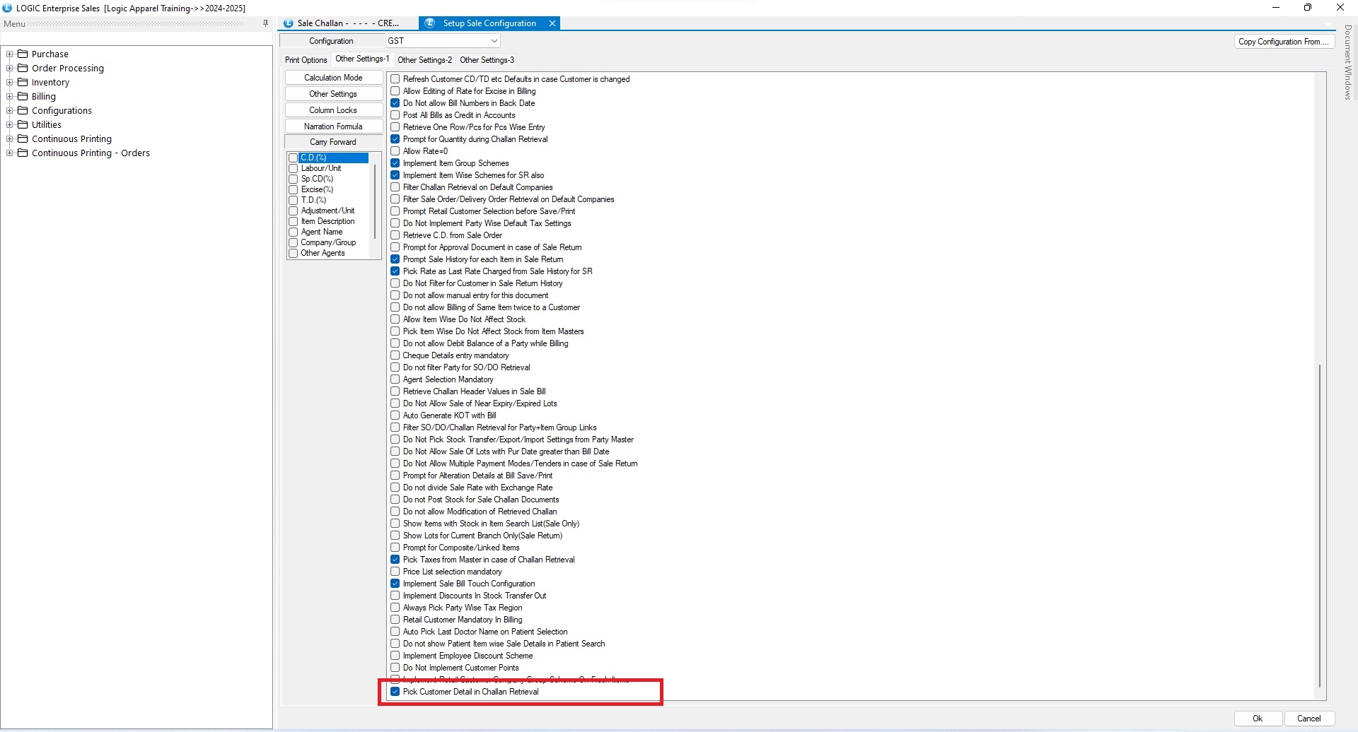 This option Help you to Retrieve Customer/Account Entry Customer name in Sale Bill from Sale Challan