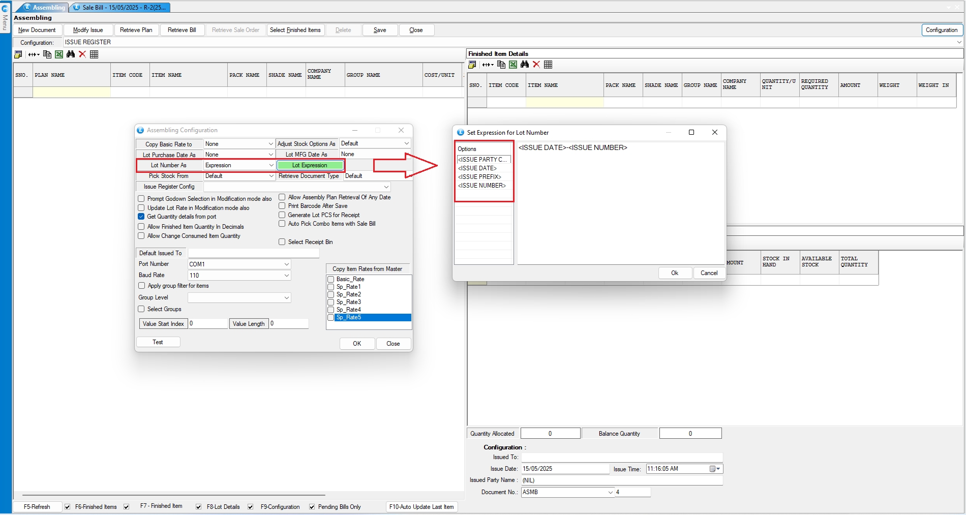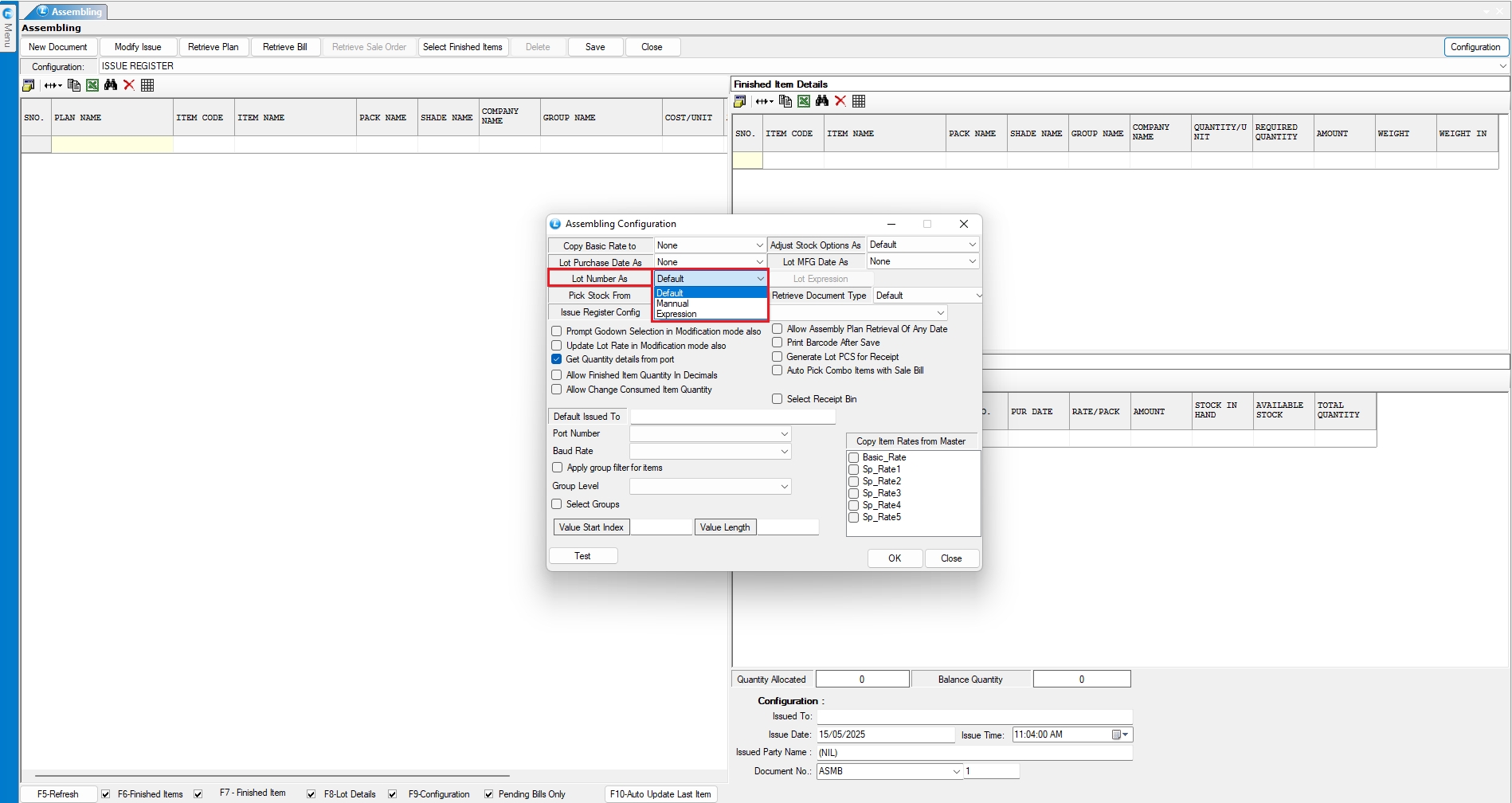 This option allows users to generate LOT numbers using either the Manual method or Expression-based in logic ERP. It guides you through enabling the feature and implementing it effectively within the assembling processes.