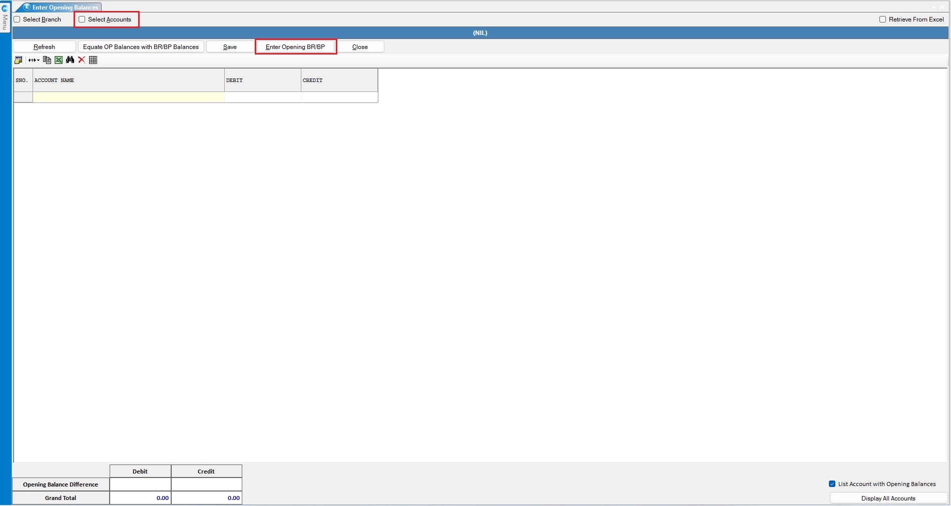 Enter Opening BR /BP of multiple Accounts using Excel.