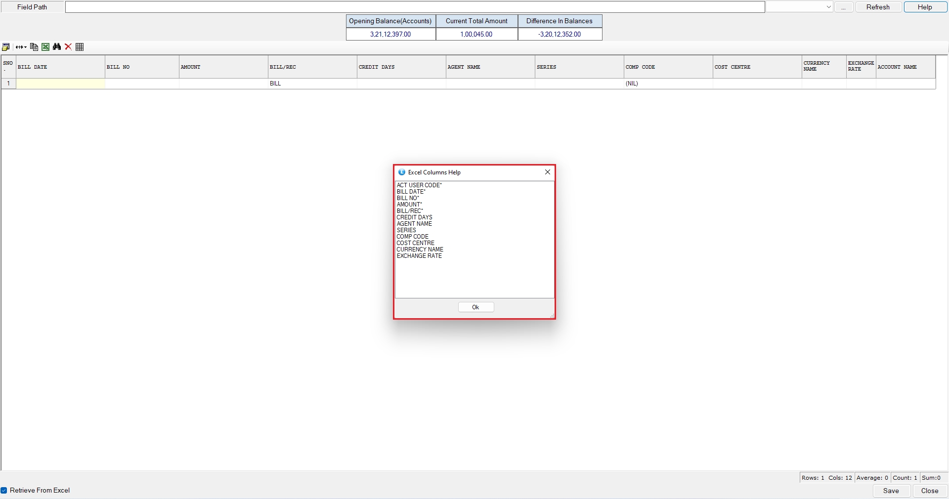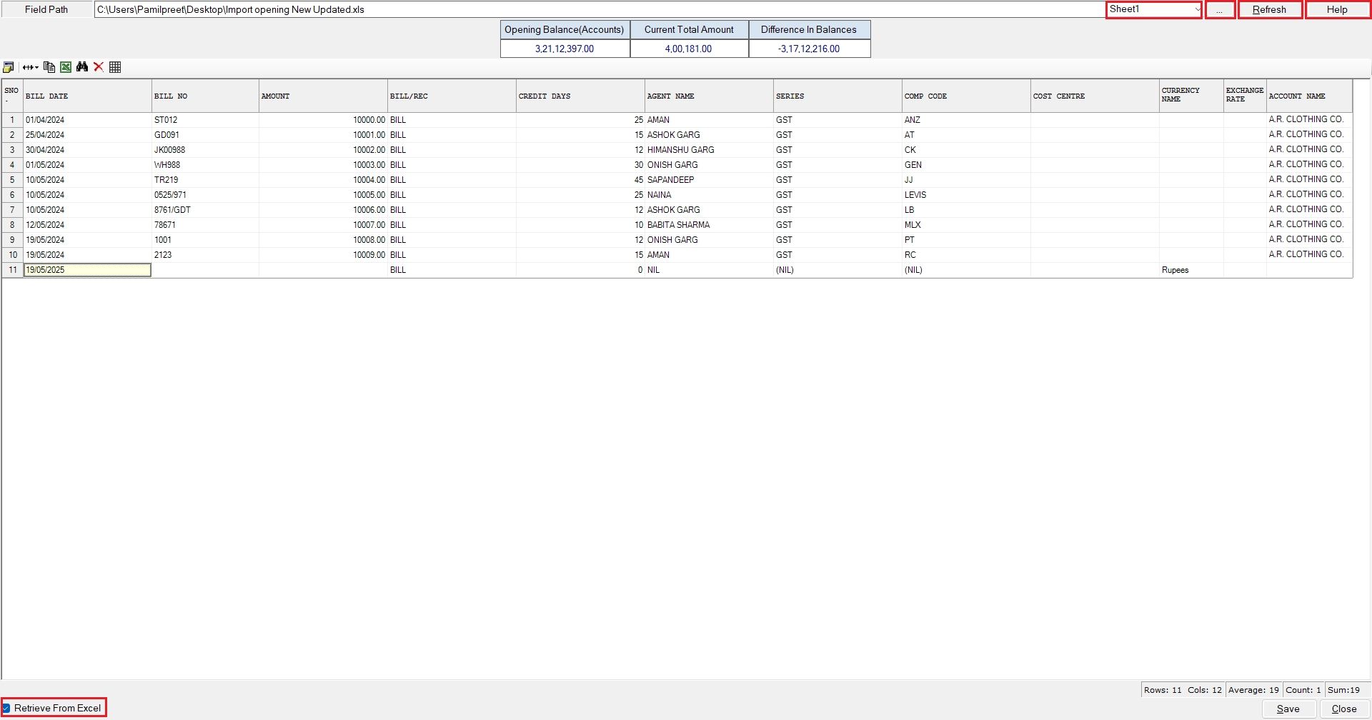 Upon refreshing, all Party-wise opening balances will be imported bill-wise into the system.