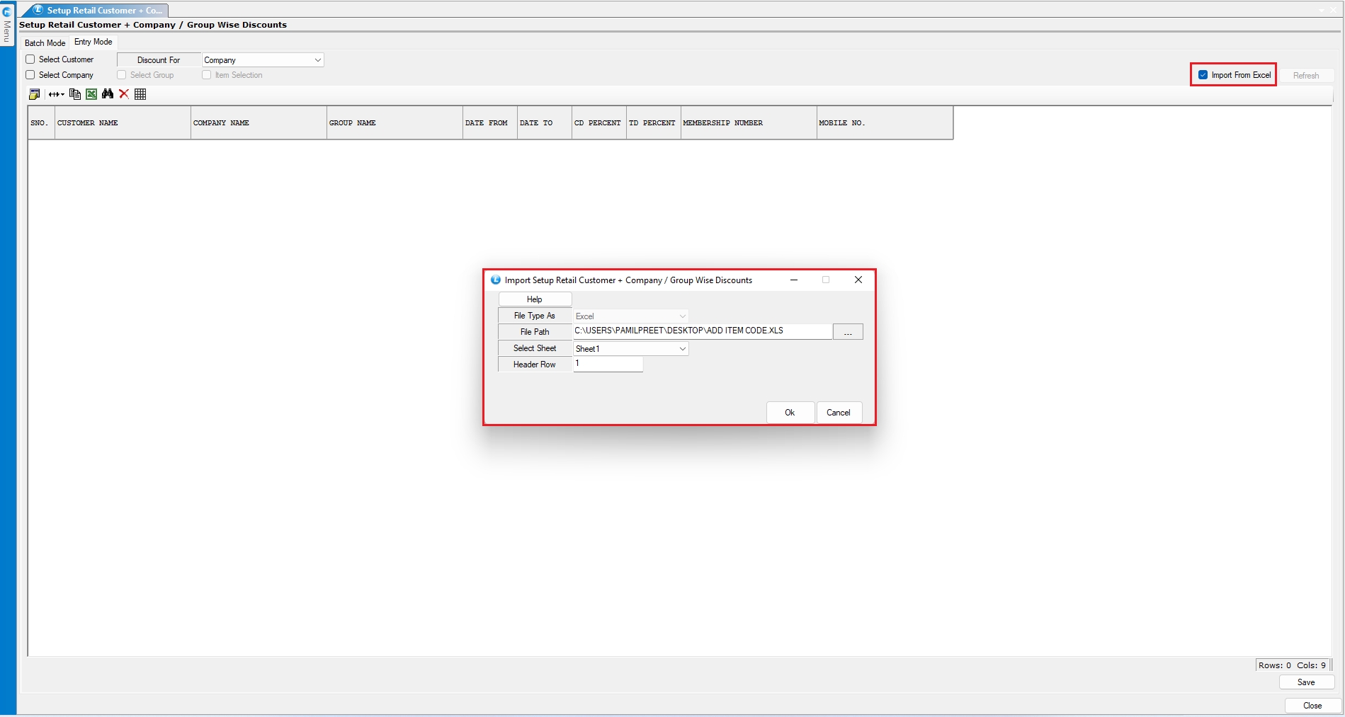 Excel Import Option added in Setup Retail Customer + Company / Group Wise Discounts