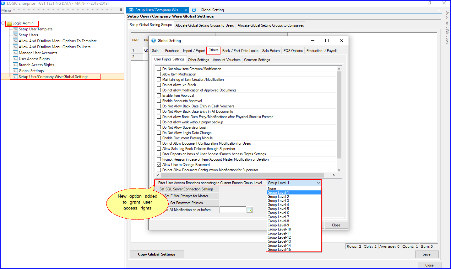 This new update will allow you to provide users with access rights of multiple branches according to Branch Group Levels.