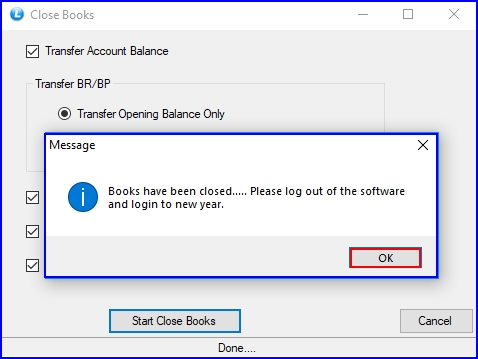 After the close books process finishes, click on the Ok button. Now you can Login in the new Financial year 2024-2025 created.