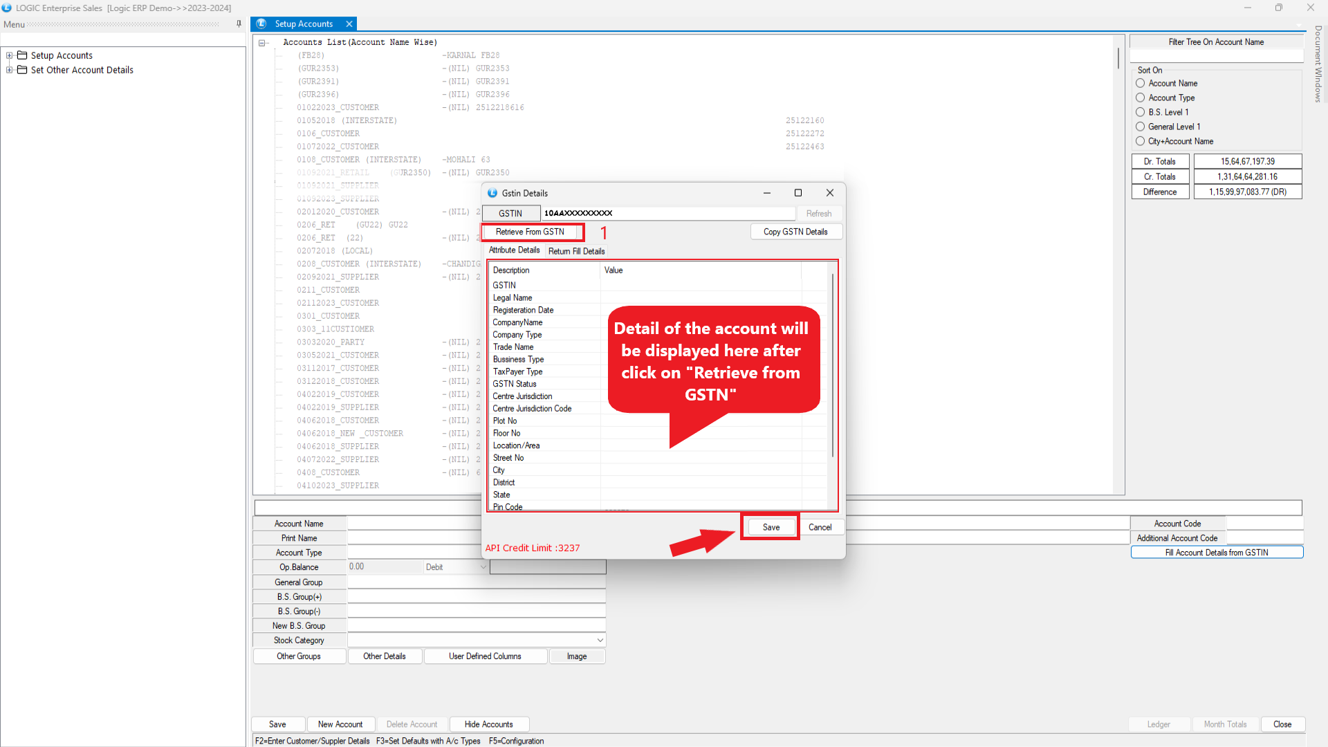 Then click on “Retrieve from GSTIN”, all the Details of the account will fetch from GSTIN number, then Save