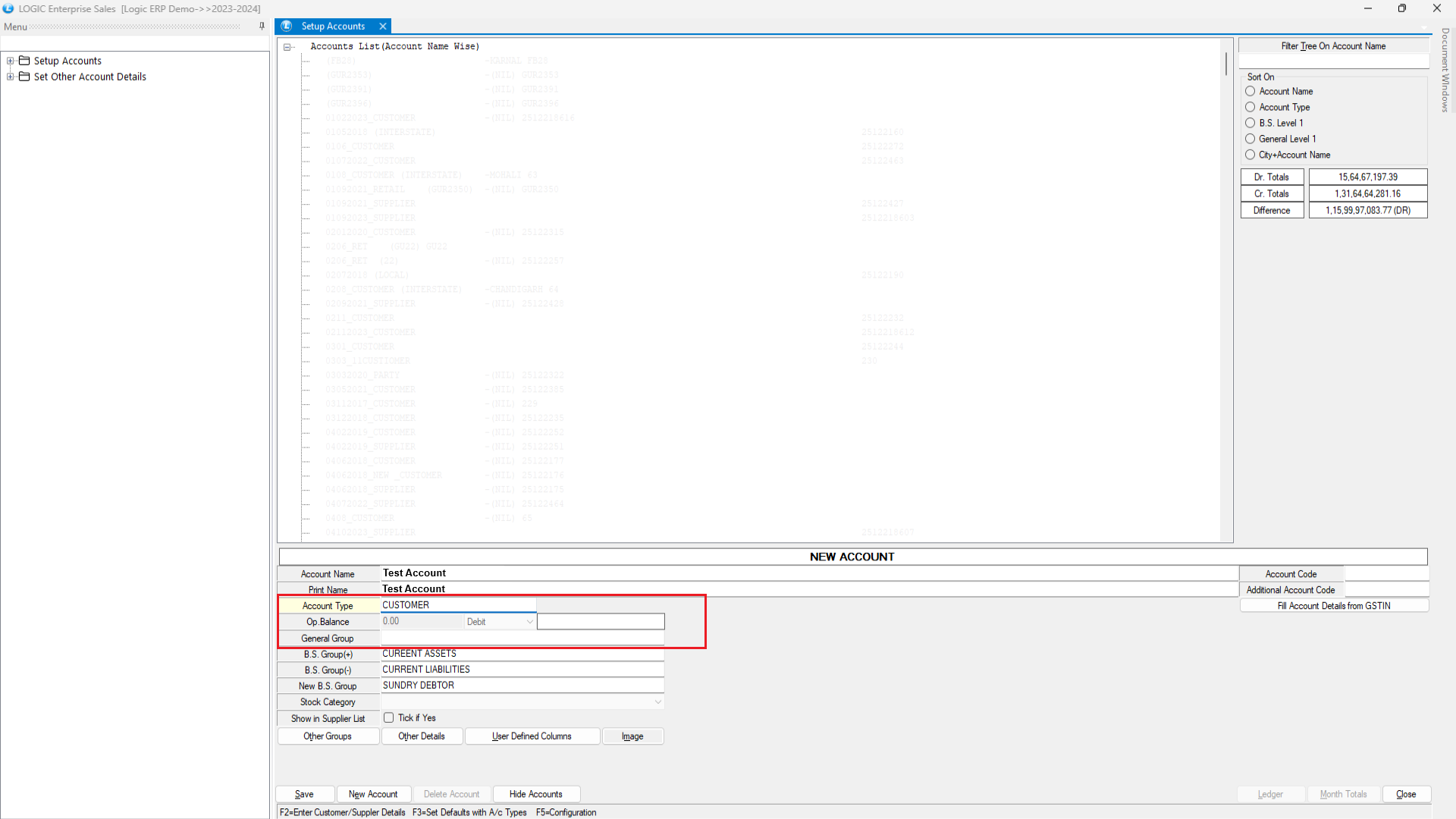 Now fill the extra details like account type, Op.Balance , General Group and Save .