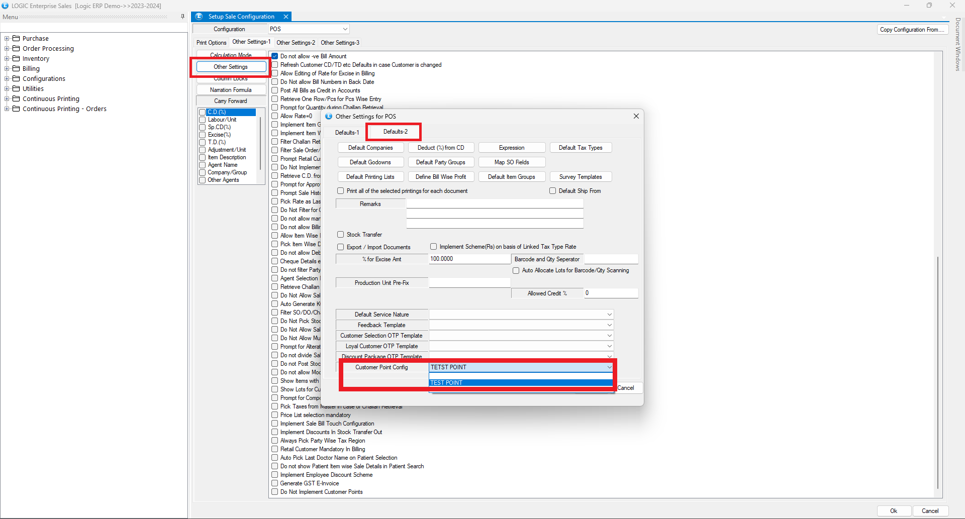 Step 1: Go to the Sale Voucher Configuration > Other settings > Default-2 > Choose option in the “Customer Point Config”.