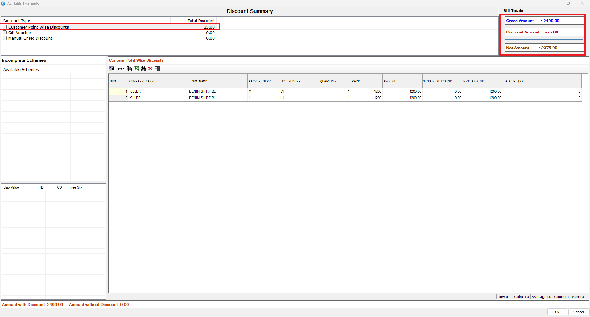 Step 2: Create sale Bill , based on the selected Point Configuration, Discount will be applied on the bill.