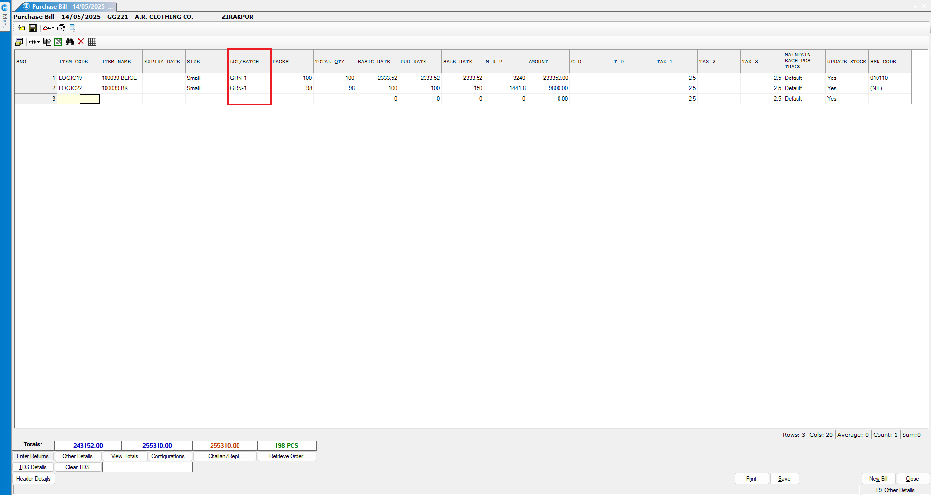 As soon as the item is selected, the system will automatically generate a LOT Number using the "GRN Number", ensuring accurate tracking and traceability.
