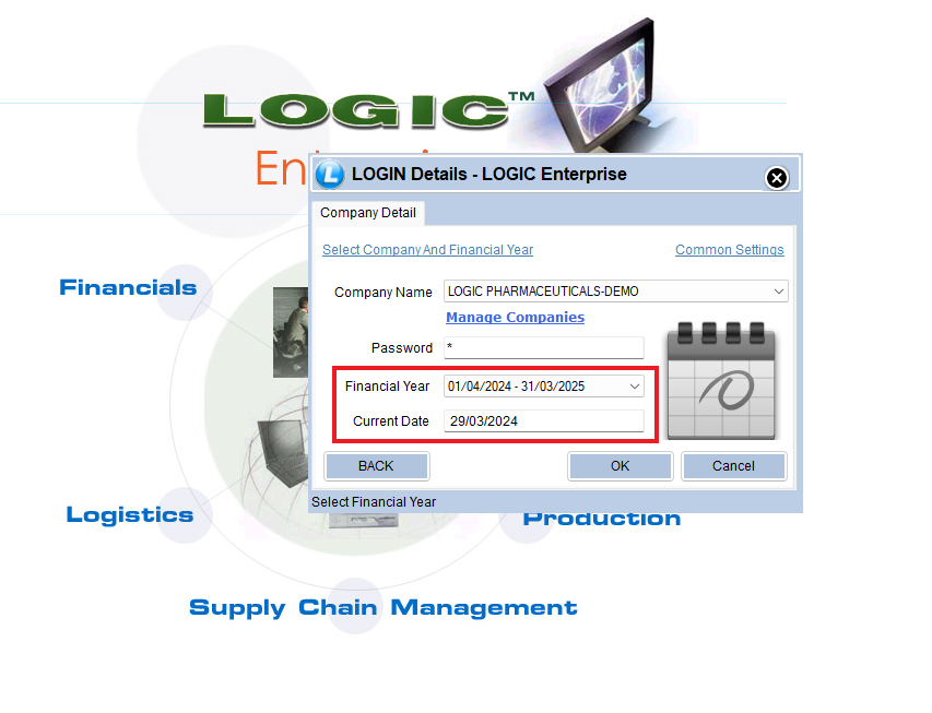 This option will work only for a customer using Logic ERP application other than Logic Enterprise When you login in the software on or after 1st April and you haven’t performed close books, then close books window will automatically open prompting you to perform close books before using the software. You can also click on cancel to continue work in the previous year and later perform close books.
